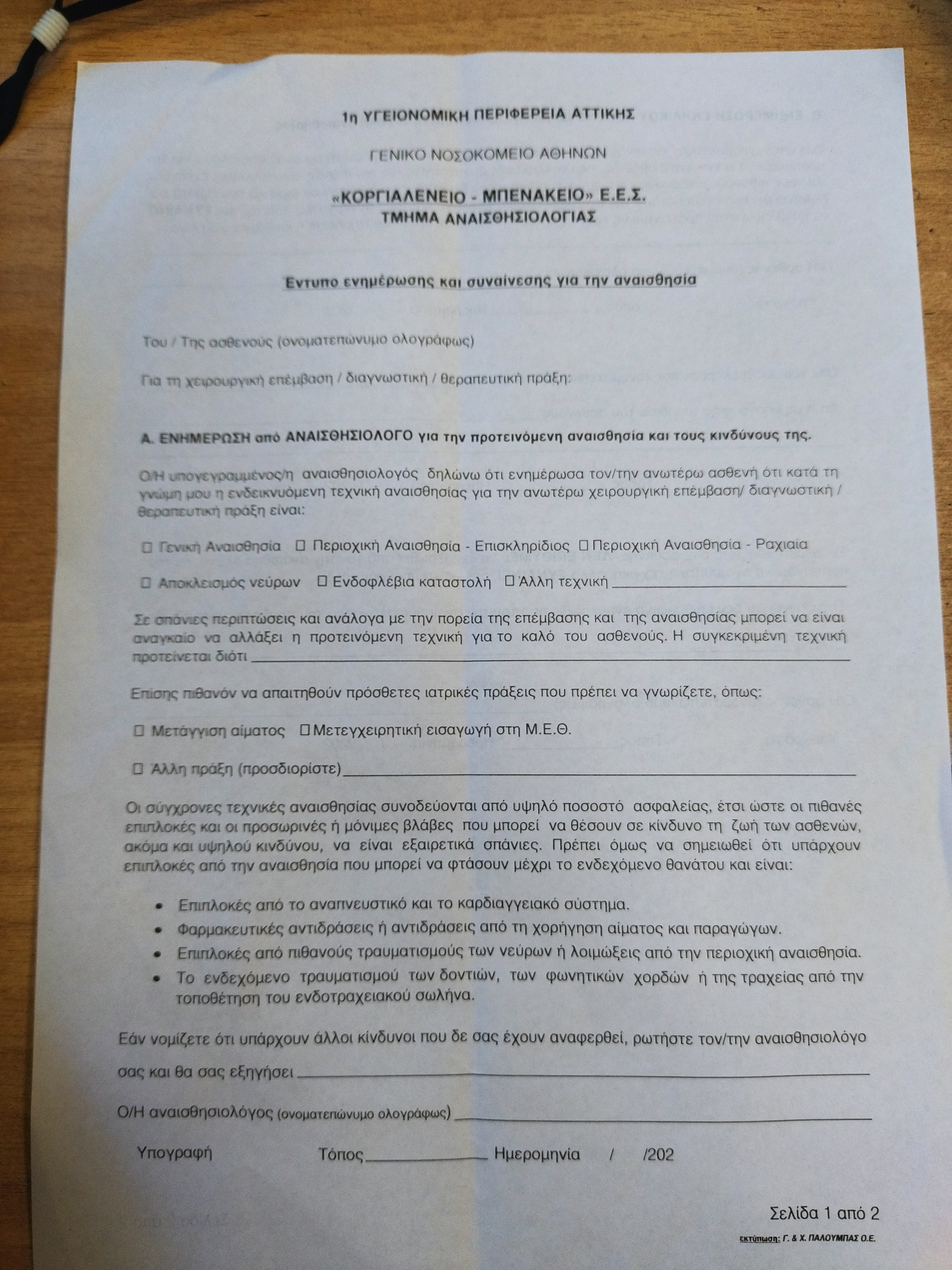 ΕΝΤΥΠΑ ΣΥΓΚΑΤΑΘΕΣΗΣ-ΣΥΝΑΙΝΕΣΗΣ ΑΣΘΕΝΩΝ (ΔΙΑΣΤ. Α4-ΔΙΠΛΗΣ ΟΨΗΣ)